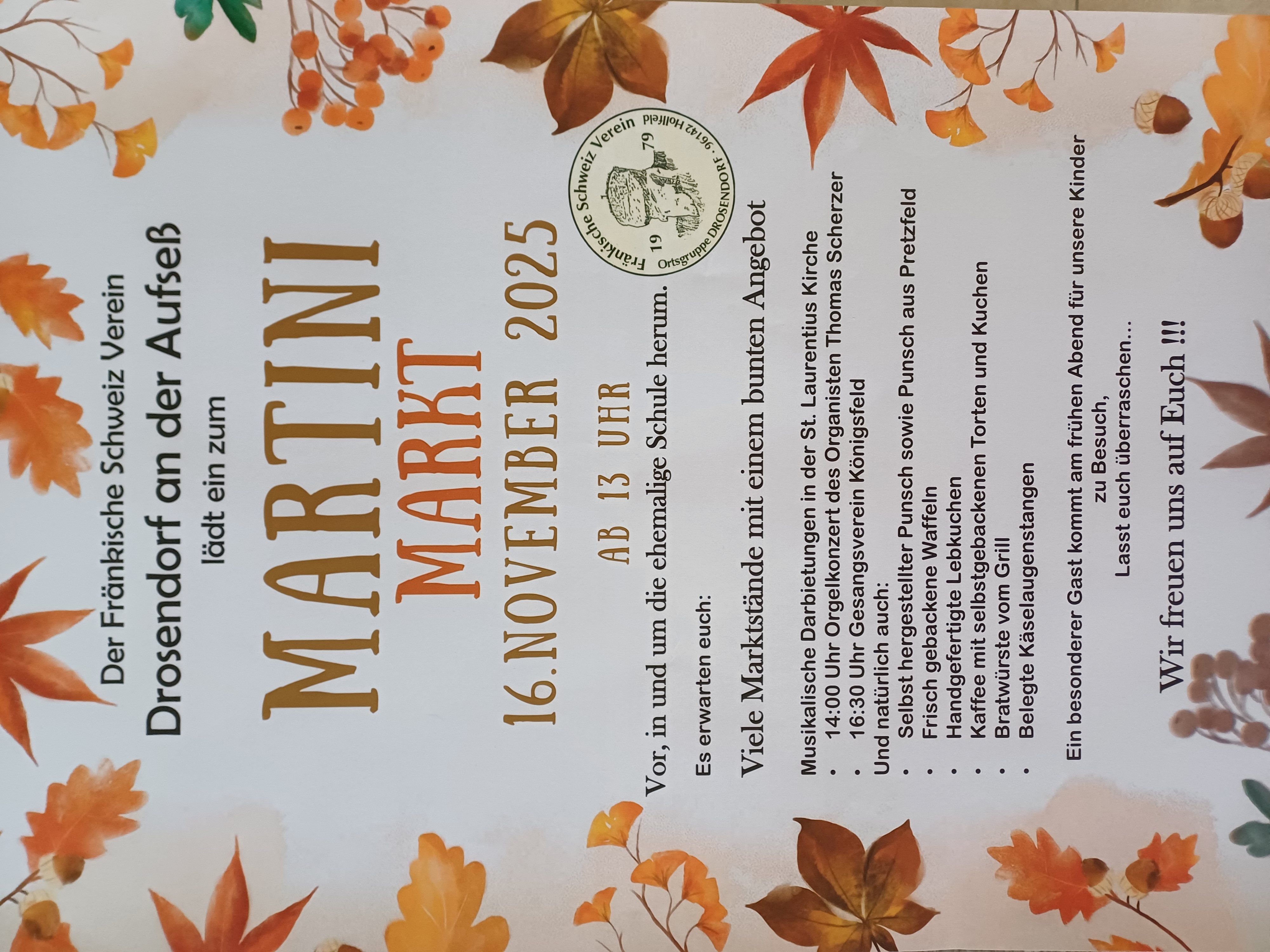 Die Ortsgruppe Drosendorf lädt ein zum Martini-Markt am 16.11.2025. -